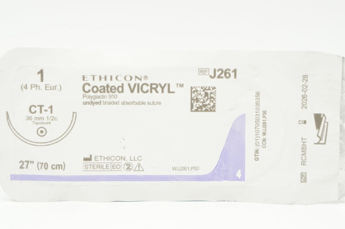 Ethicon J261 1 Coated VICRYL Polyglactin 910 Undyed Braided Absorbable Stre, CT-1 36mm 1/2c Taperpoint, 27inch