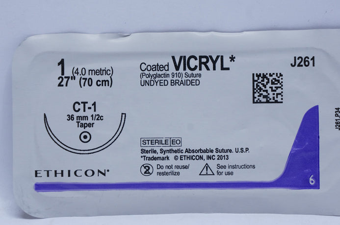 - Ethicon J261 1 VICRYL, CT-1, 36mm 1/2c Taper, 27inch (x)