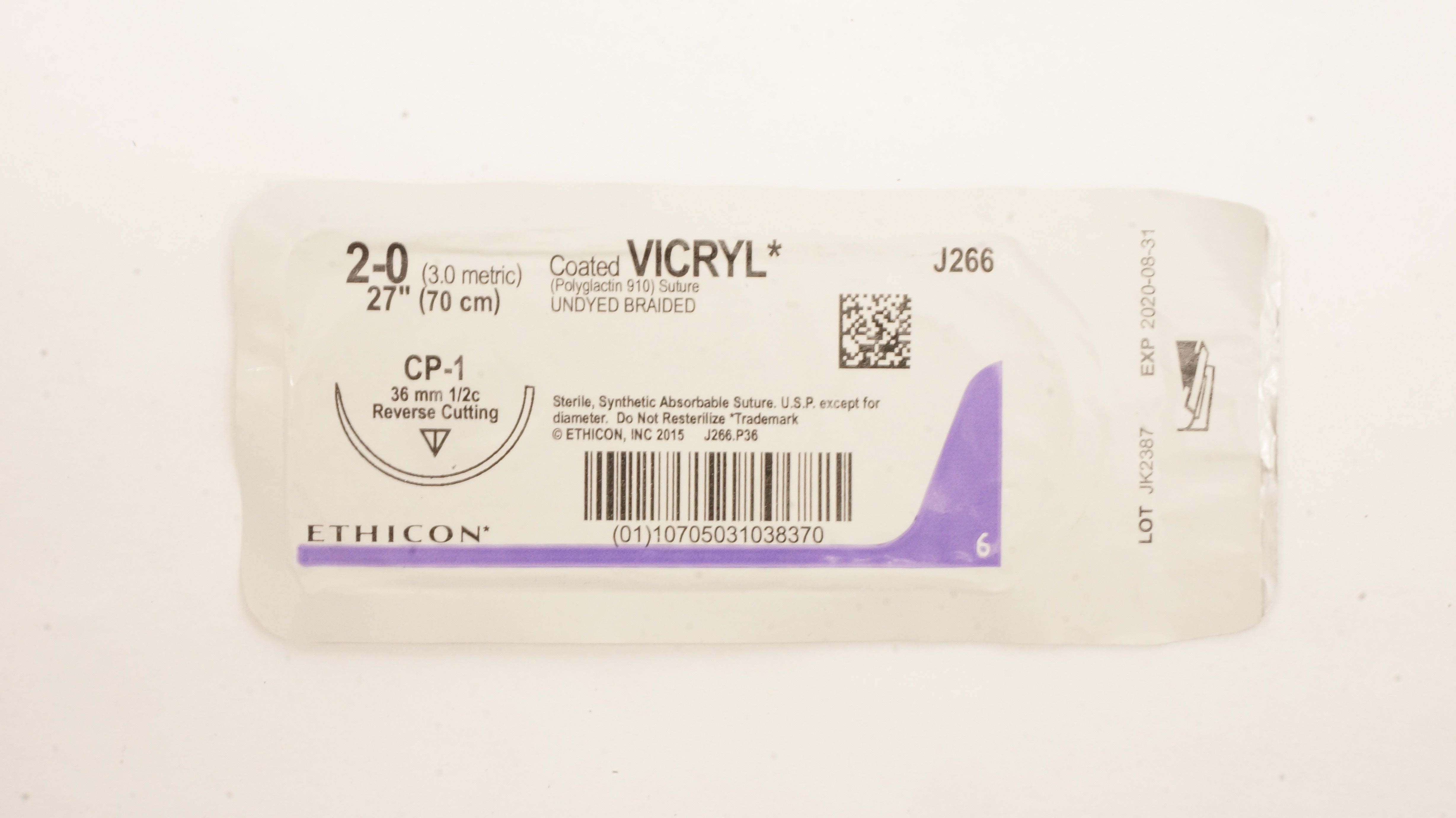 - Ethicon J266 2-0 Coated VICRYL Stre CP-1 36mm 1/2c Reverse Cutting, 27 inch (x)
