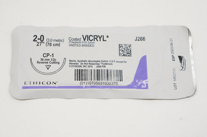 - Ethicon J266 2-0 Vicryl, CP-1, 36mm 1/2c, 27inch