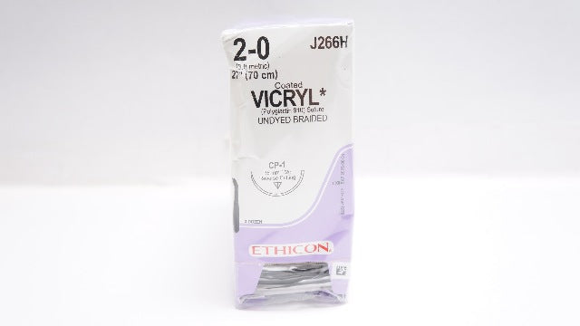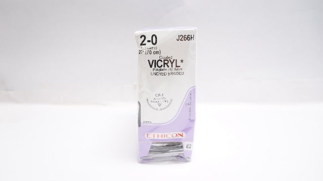 - Ethicon J266H 2-0 Coated Vicryl Undyed Brainded 27in CP-1 36mm 1/2c - Box of 36