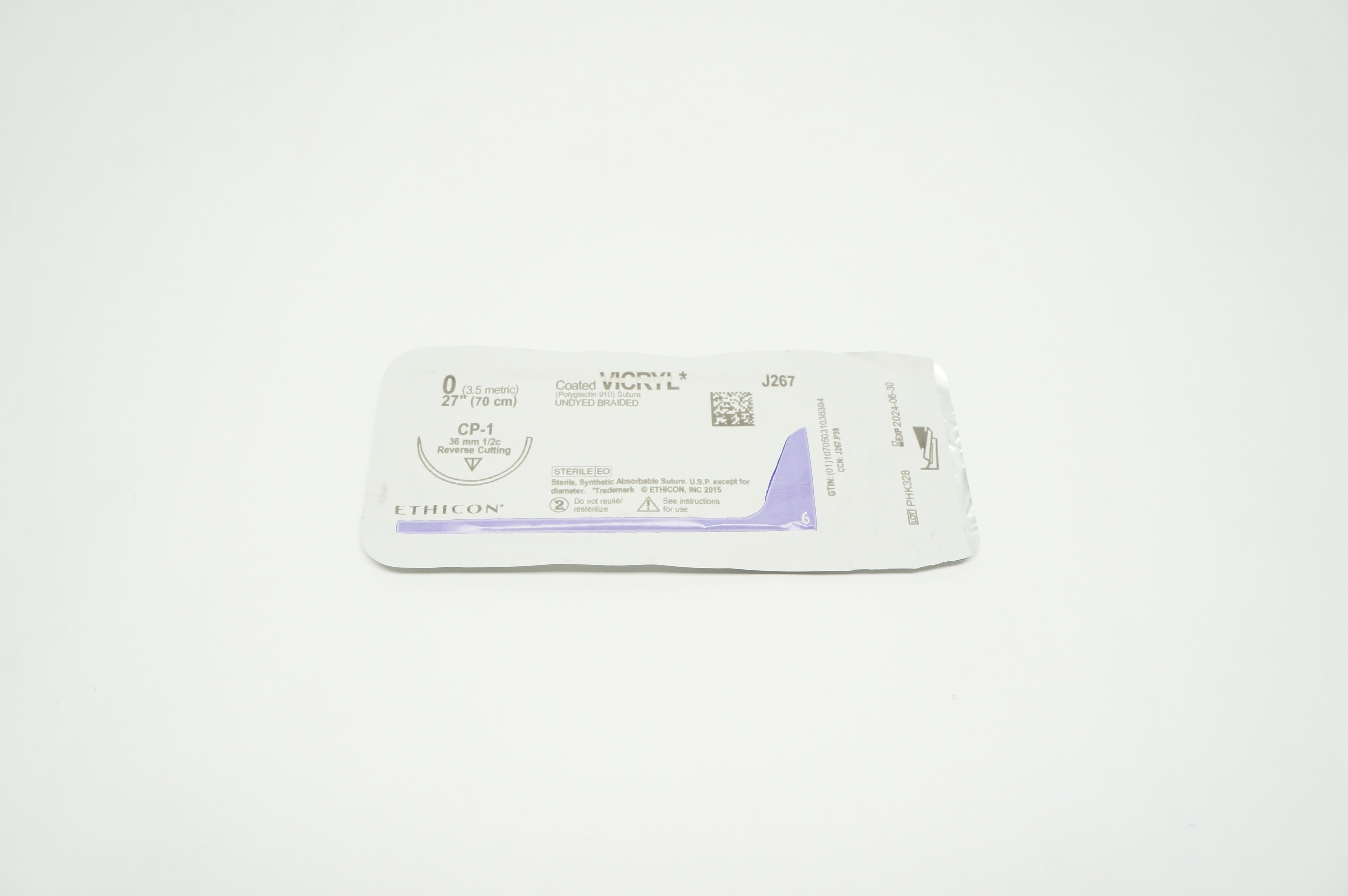 - Ethicon J267 0 VICRYL, CP-1, 36mm 1/2c Reverse Cutting 27 inch
