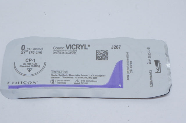 Ethicon J267 0 VICRYL, CP-1, 36mm 1/2c Reverse Cutting, 27inch