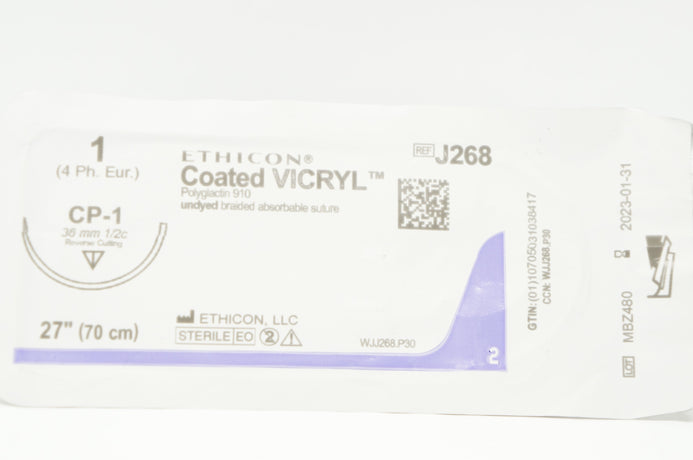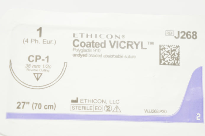 Ethicon J268 1 VICRYL, CP-1, 36mm 1/2c Reverse Cutting, 27inch