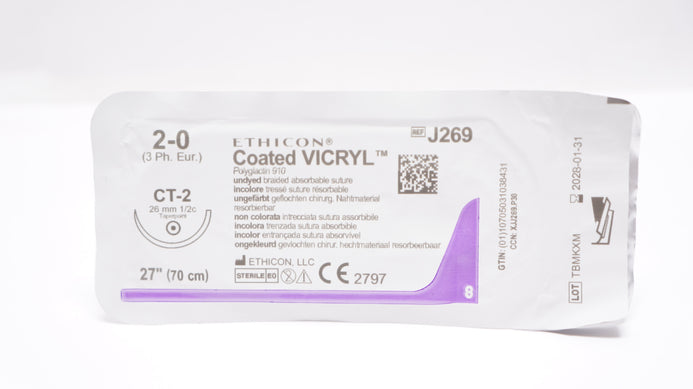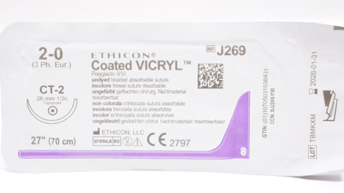 Ethicon J269 2-0 Coated VICRYL Polyglactin Stre CT-2 26mm 1/2c Taperpoint 27inch