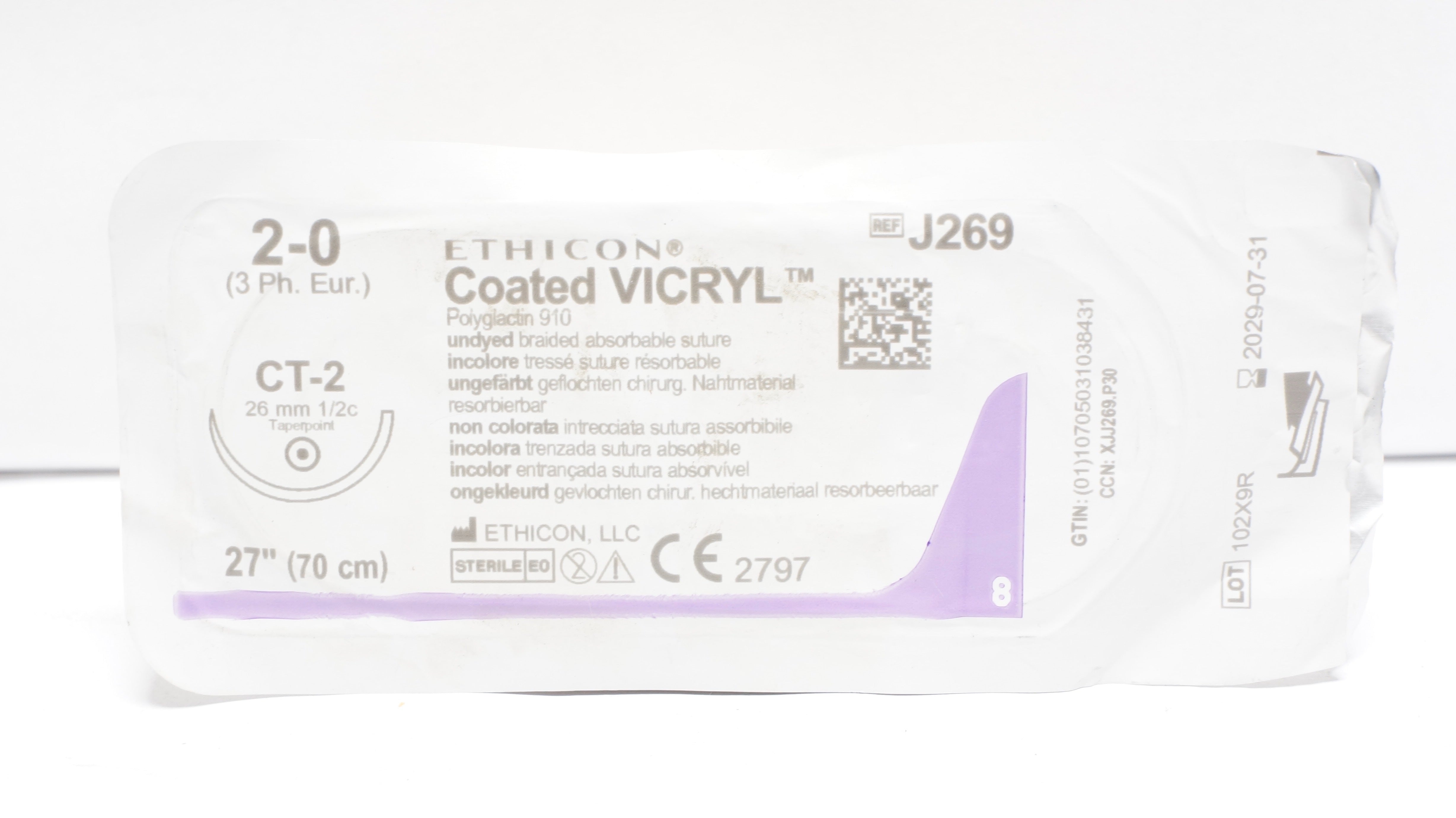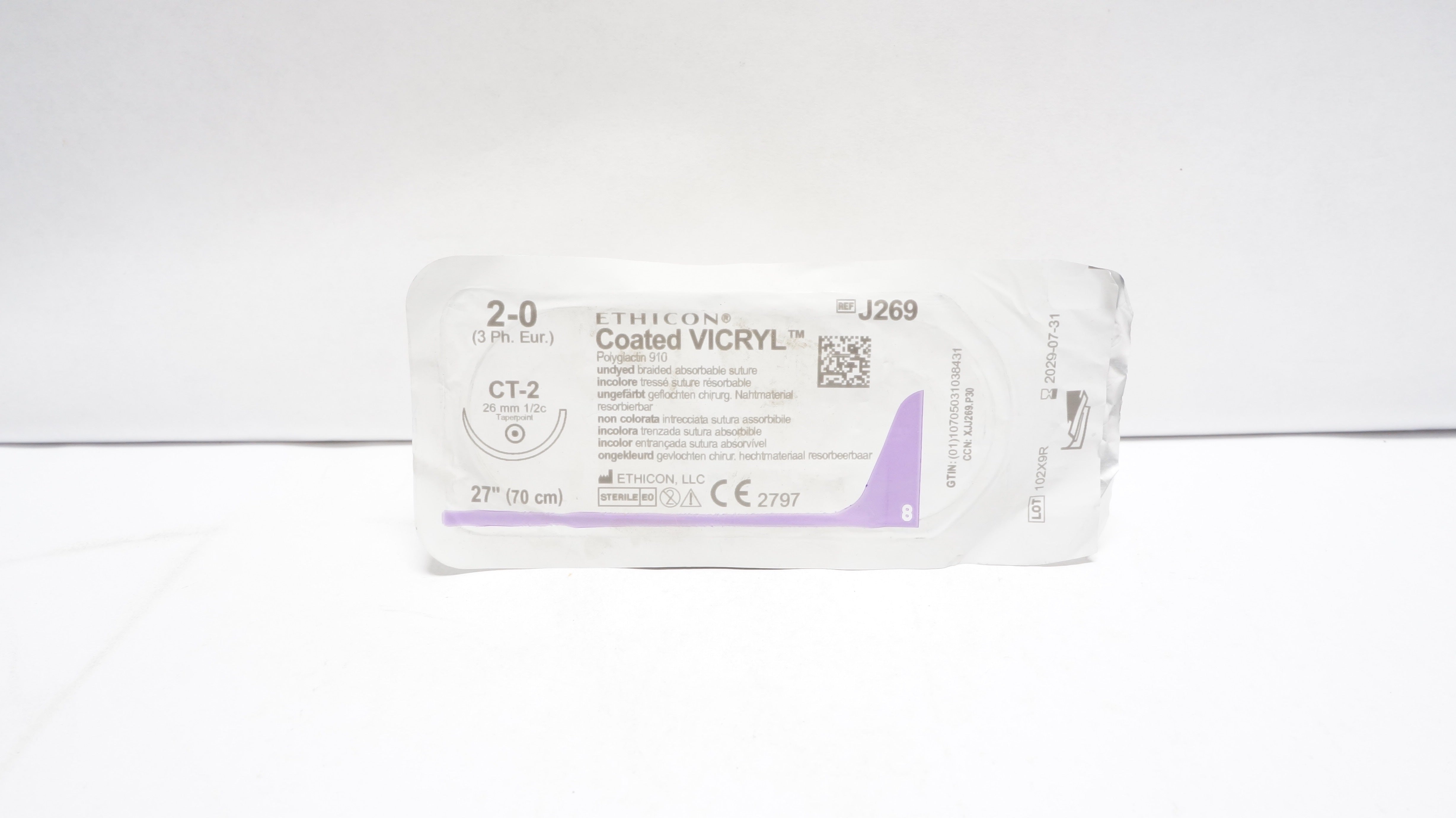 - Ethicon J269 2-0 Coated VICRYL Polyglactin Stre CT-2 26mm 1/2c Taperpoint 27inch