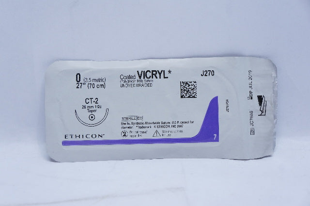 - Ethicon J270 0 VICRYL, CT-2, 26mm 1/2c Taper, 27inch (x)