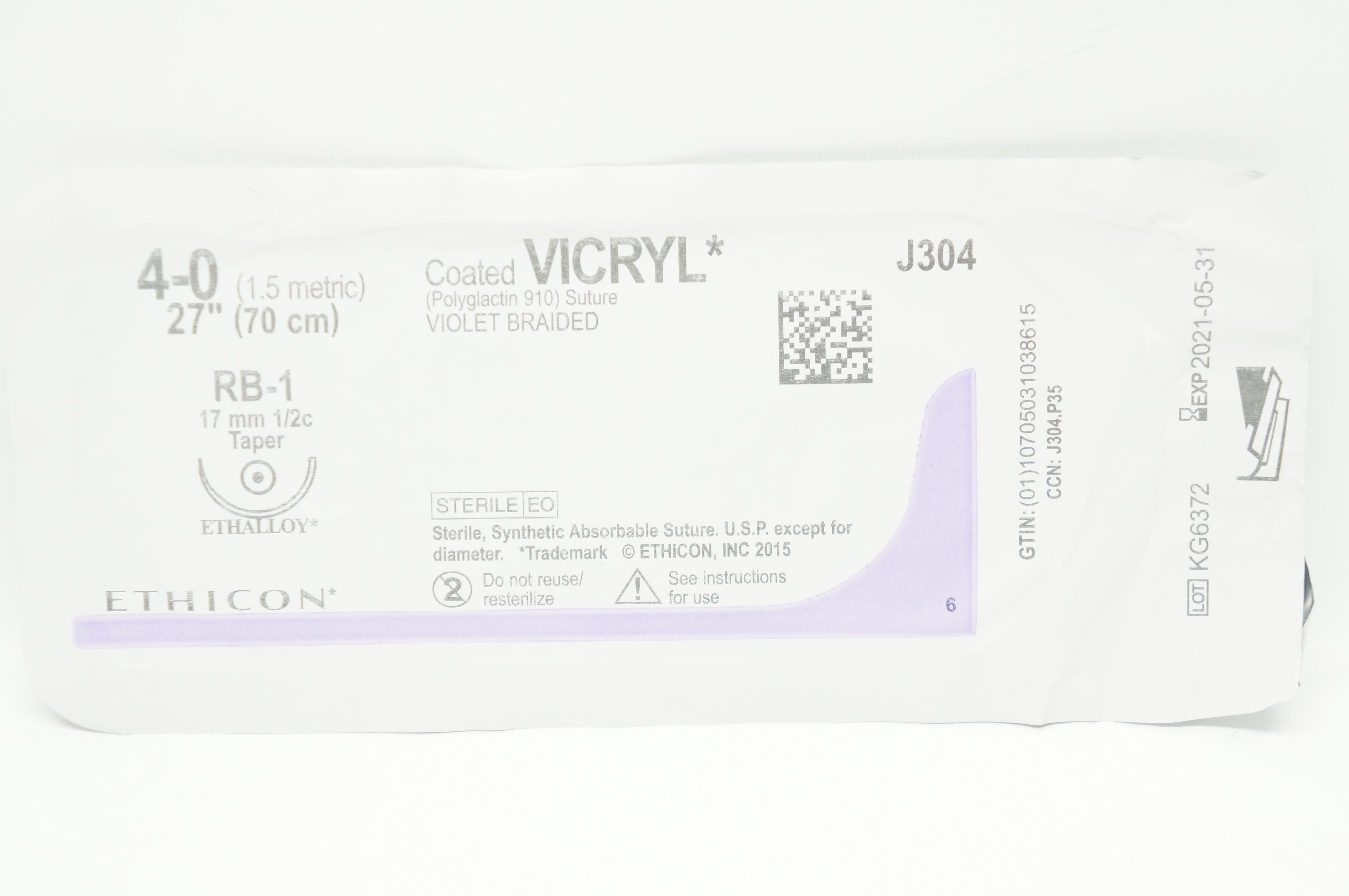 - Ethicon J304H 4-0 Coated VICRYL RB-1 17mm 1/2c Taper 27in(x)