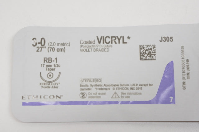 - Ethicon J305 3-0 VICRYL, RB-1, 17mm 1/2c Taper, 27inch