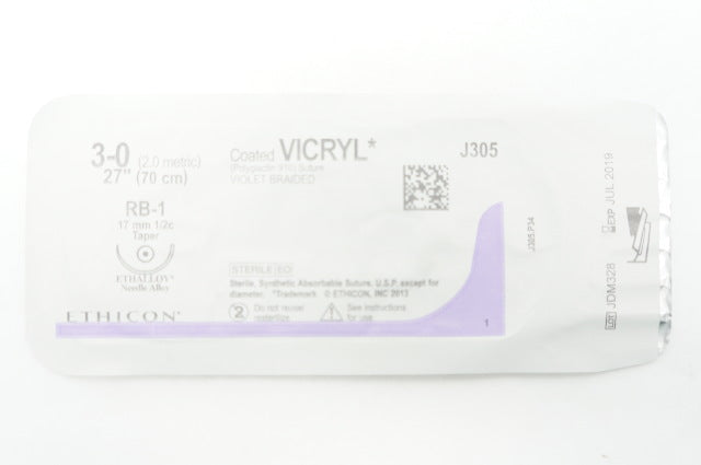 Ethicon J305 3-0 Coated VICRYL Suture Violet Braided , RB-1, 17mm 1/2c Taper, 27inch
