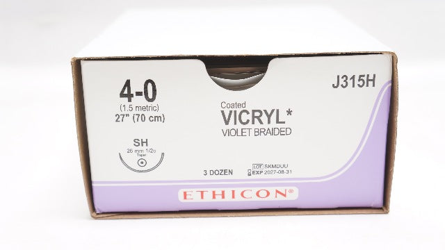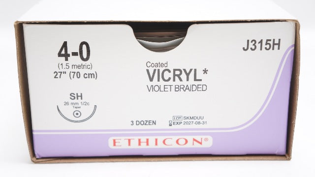 Ethicon J315H Coated Vicryl Suture Sh 26mm 1/2c Taper 27In - Box of 36