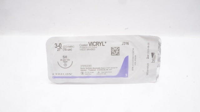 Ethicon J316 3-0 Coated VICRYL (Polyglactin 910) Suture, Violet Braided, SH 26mm 1/2c Taper, 27inch