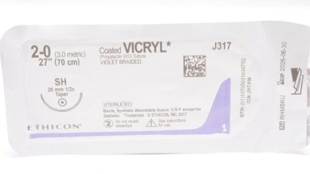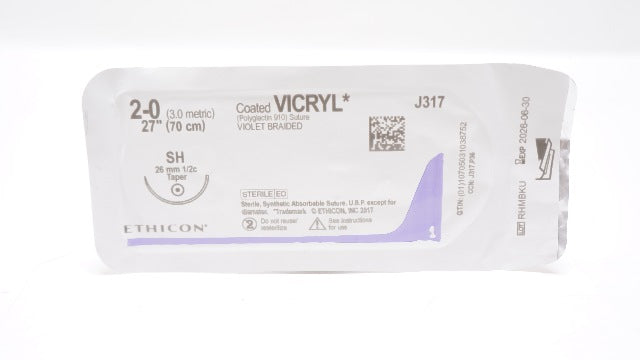 - Ethicon J317 2-0 Coated VICRYL, SH, 26mm 1/2c Taper, 27inch (x)