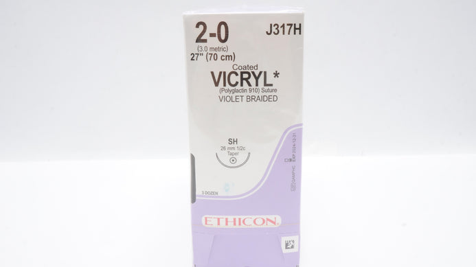 - Ethicon J317H 2-0 Coated Vicryl Stre Violet Braided SH 26mm 1/2c Taper-Box of 36