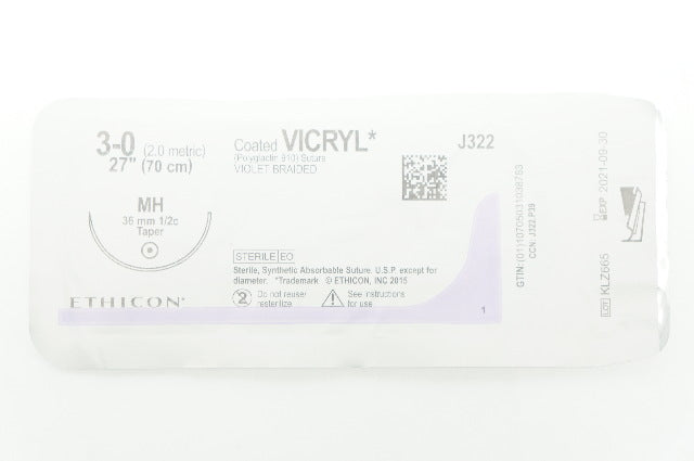 - Ethicon J322 3-0 VICRYL MH 36mm 1/2c Taper 27inch