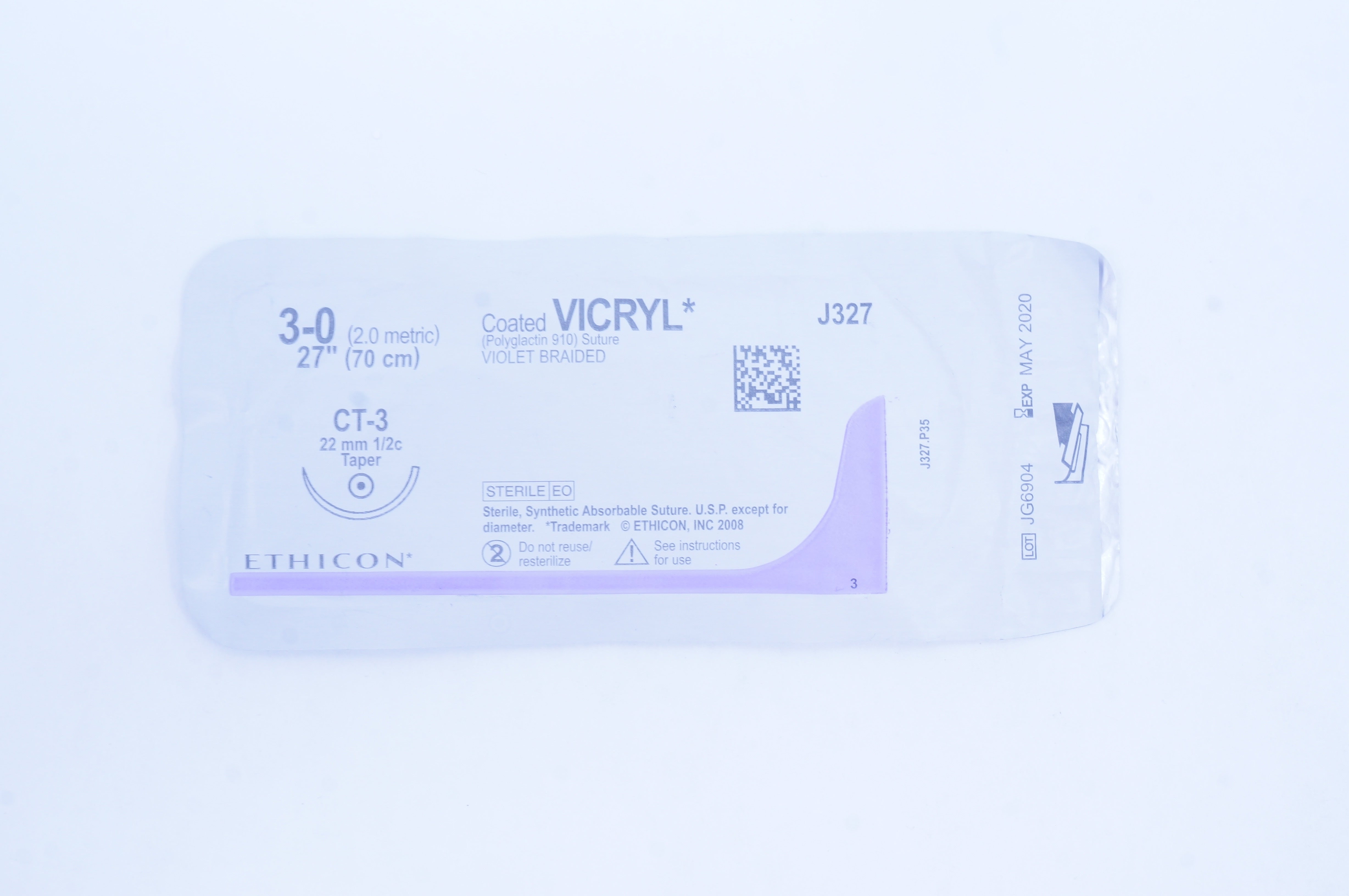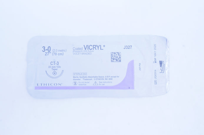 - Ethicon J327 3-0 Coated VICRYL, CT-3 22mm 1/2c Taper, 27inch (x)