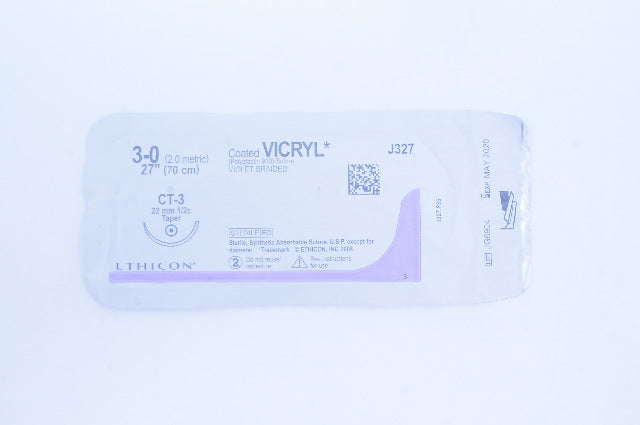 - Ethicon J327 3-0 Coated VICRYL Stre, CT-3 22mm 1/2c Taper, 27inch (x)