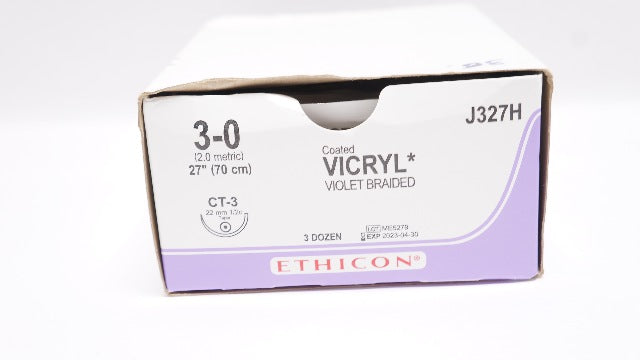 Ethicon J327H 3-0 Coated Vicryl Stre CT-3 22mm 1/2c Taper 27inch (x) - Box of 36