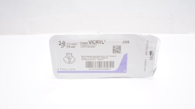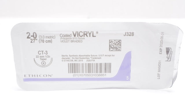 - Ethicon J328 2-0 Coated VICRYL Polyglactin Stre CT-3 22mm 1/2c Taper, 27inch (x)