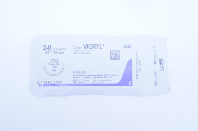 Ethicon J333 2-0 Coated VICRYL (Polyglactin 910) Suture Violet Braided CT-2 26mm 1/2c Taper, 27 inch