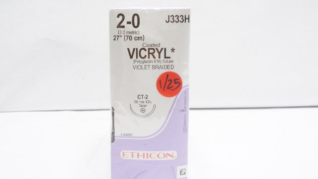 - Ethicon J333H 2-0 Coated Vicryl Stre. CT-2 26mm 1/2c Taper 27In - Box of 36(x)