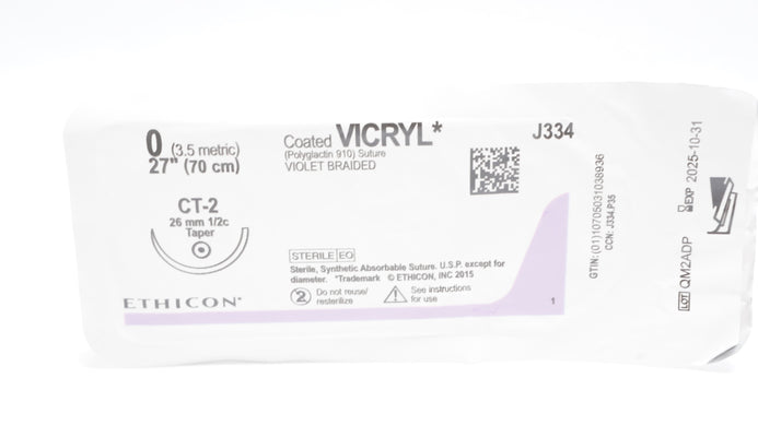 - Ethicon J334 0 Coated VICRYL Polyglactin 910 Stre CT-2, 26mm 1/2c Taper, 27inch