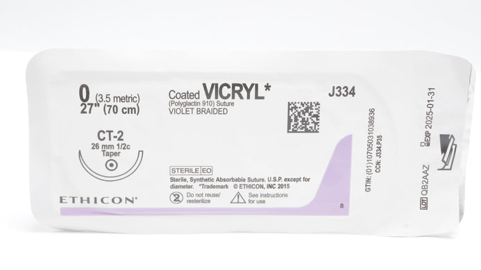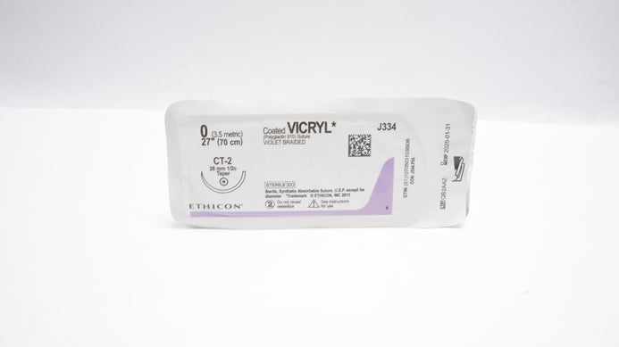 Ethicon J334 0 Coated VICRYL Polyglactin 910 Violet Braided Suture CT-2 26mm 1/2c Taper, 27inch