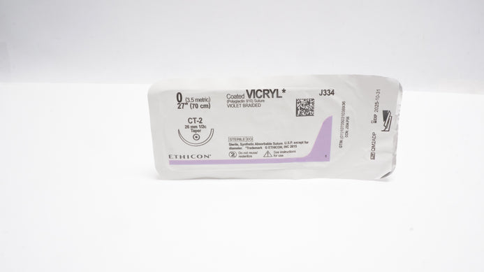 Ethicon J334 0 Coated VICRYL Polyglactin Stre CT-2 26mm 1/2c Taper, 27inch(x)