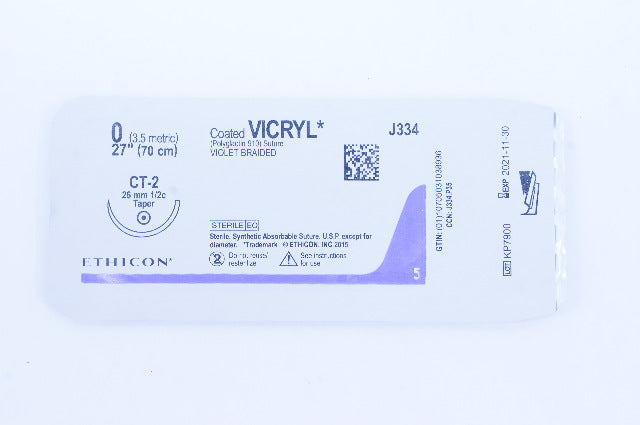 Ethicon J334 0 Coated VICRYL (Polyglactin 910) Suture, Violet Braided, CT-2, 26mm 1/2c Taper, 27 inch