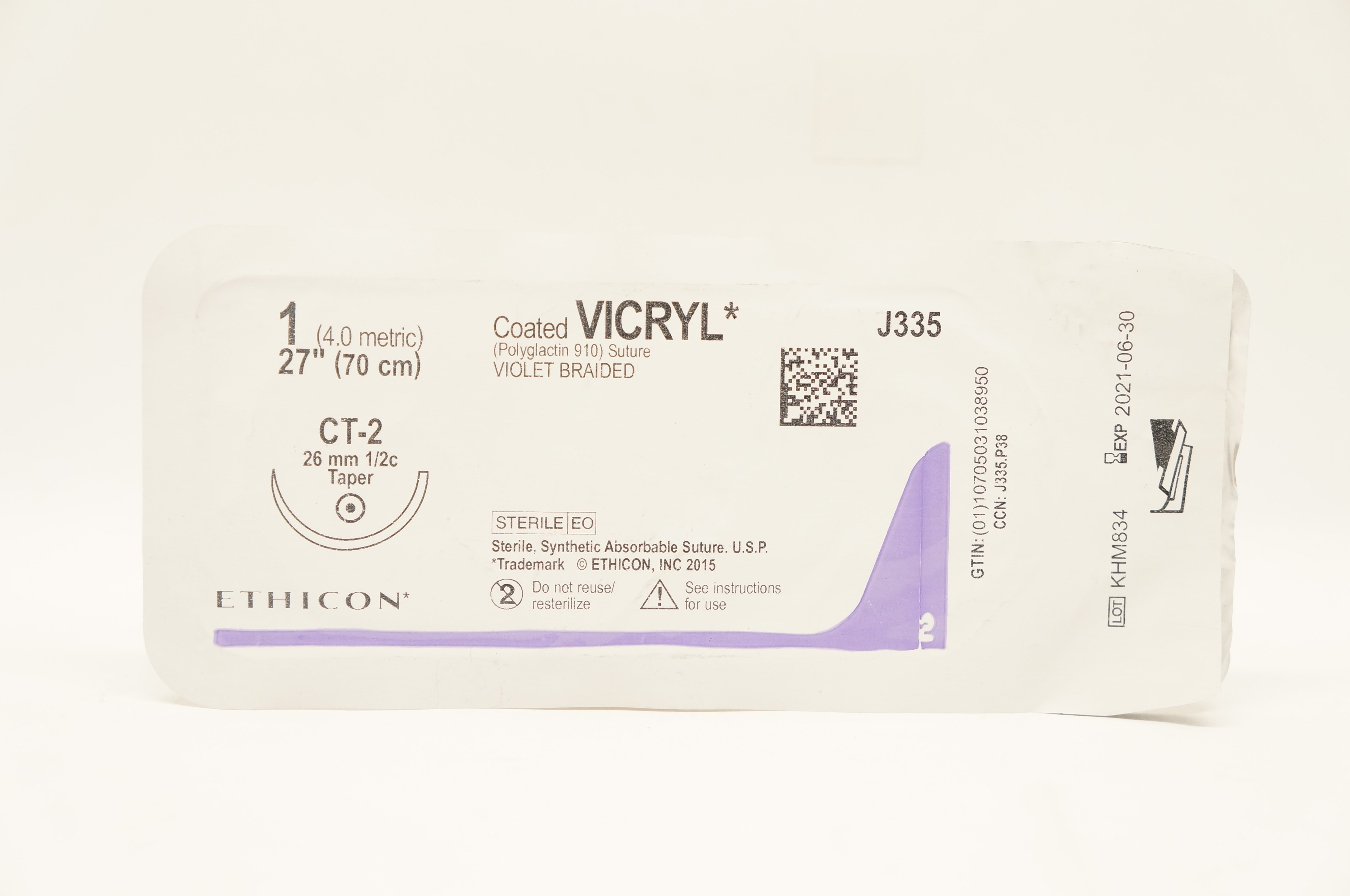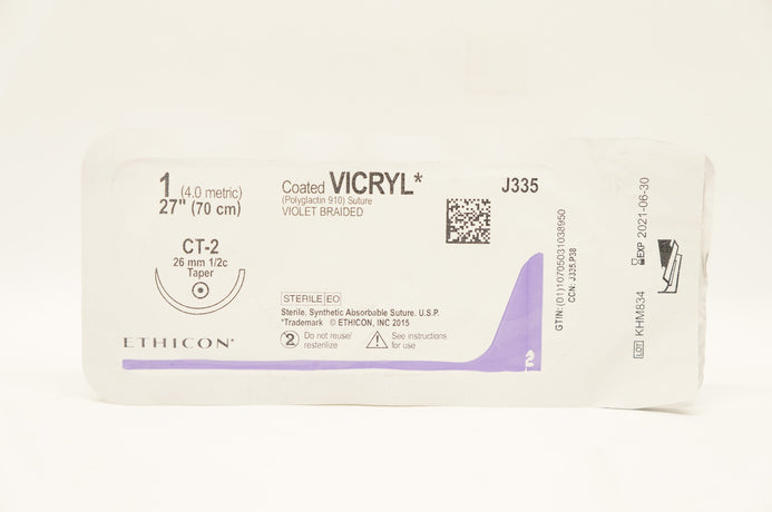 Ethicon J335 1 Coated Vicryl CT-2, 26mm 1/2c Taper, 27inch (x)