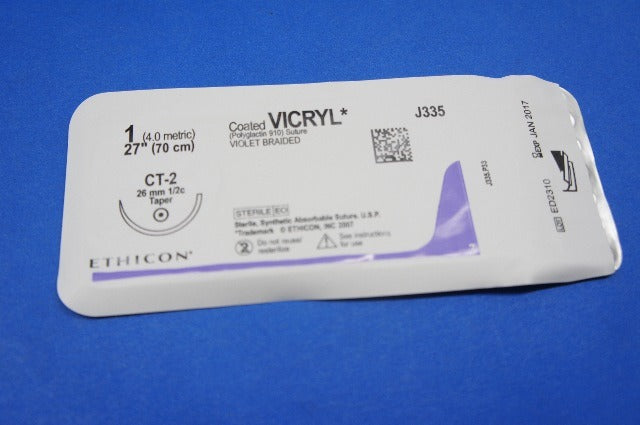 Ethicon J335H VICRYL, Taper Point, Absorbable, CT-2 26mm, Violet Braided 27" 70cm, Size: 1