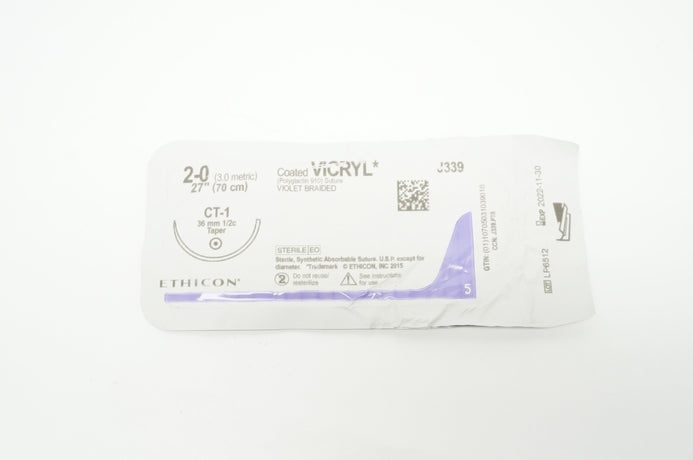 - Ethicon J339 2-0 Coated VICRYL Polyglactin Stre CT-1 36mm 1/2c Taper 27inch