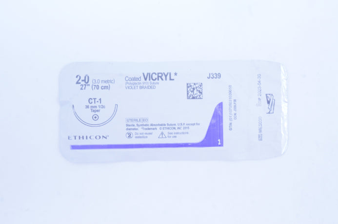 Ethicon J339 2-0 Coated VICRYL (Polyglactin 910) Suture Viopet Braided CT-1 36mm 1/2c Taper, 27 inch