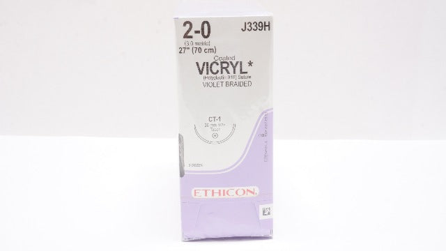 - Ethicon J339H 2-0 Coated Vicryl Stre CT-1 36mm 1/2c Taper, 27inch - Box of 33