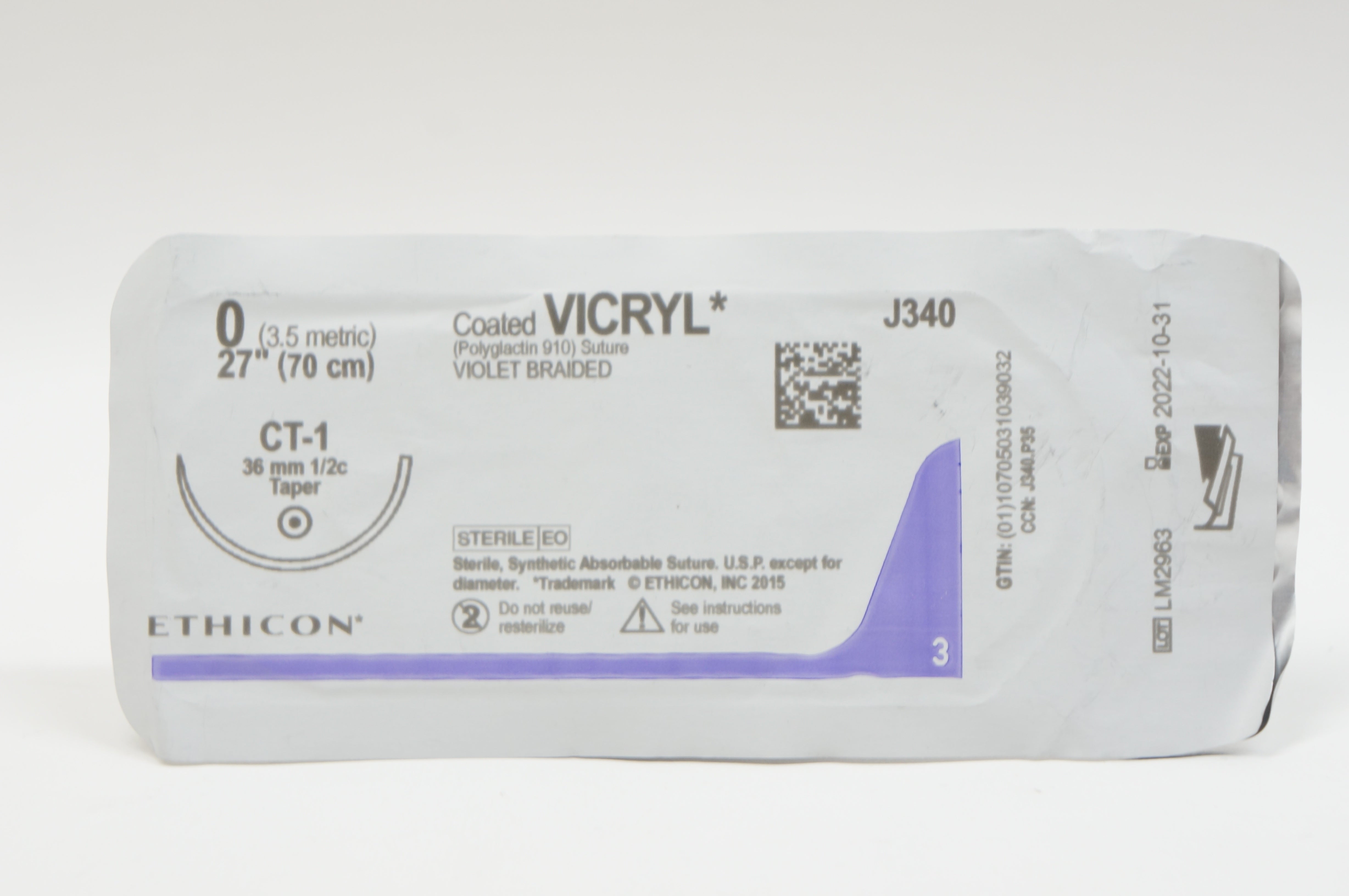 Ethicon J340 0 VICRYL, CT-1, 36mm 1/2c Taper, 27inch