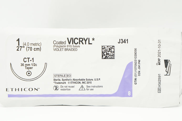 - Ethicon J341 Coated VICRYL Polyglactin 910 Stre CT-1 36mm 1/2c Taper, 27inch (x)