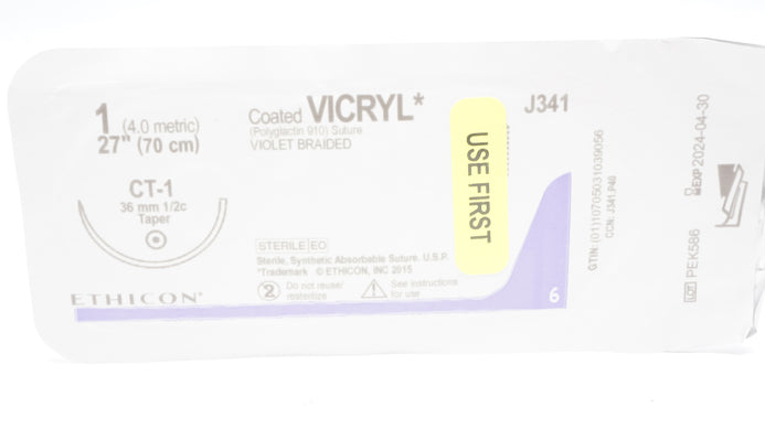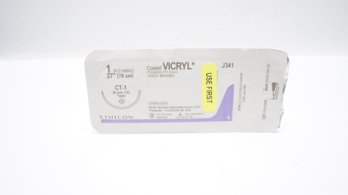 Ethicon J341 Coated VICRYL Polyglactin 910 Suture Violet Braided CT-1 36mm 1/2c Taper 27inch