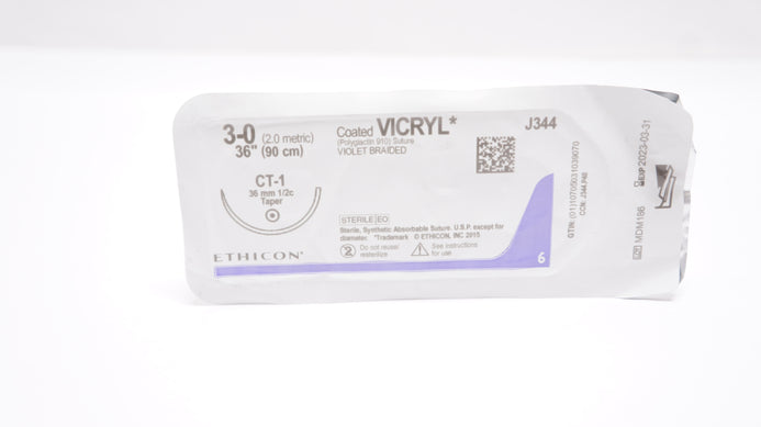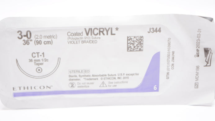 - Ethicon J344 Vicryl 3-0 CT-1 34mm 1/2c Taper 36inch (x)
