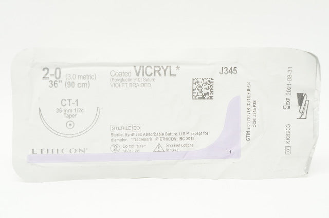 - Ethicon J345 2-0 Coated Vicryl CT-1 36mm 1/2c Taper, 36inch (x)