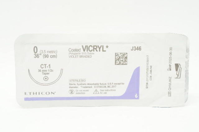 - Ethicon J346 0 Coated VICRYL Violet Braided CT-1 36mm 1/2c Taper, 36 inch