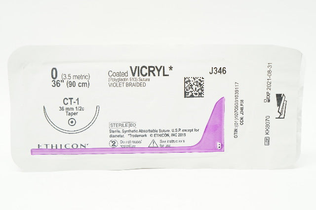 - Ethicon J346 0 Coated VICRYL Violet Braided CT-1 36mm 1/2c Taper, 36inch (x)