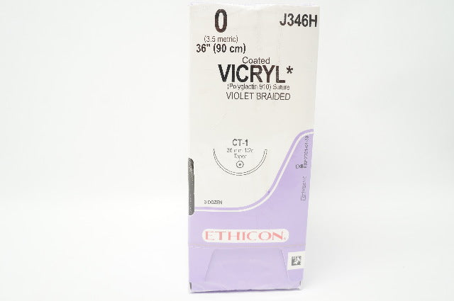Ethicon J346H 0 Vicryl Stre CT-1 36mm 1/2c Taper, 36inch (x) - Box of 36