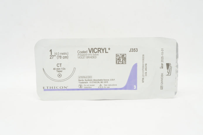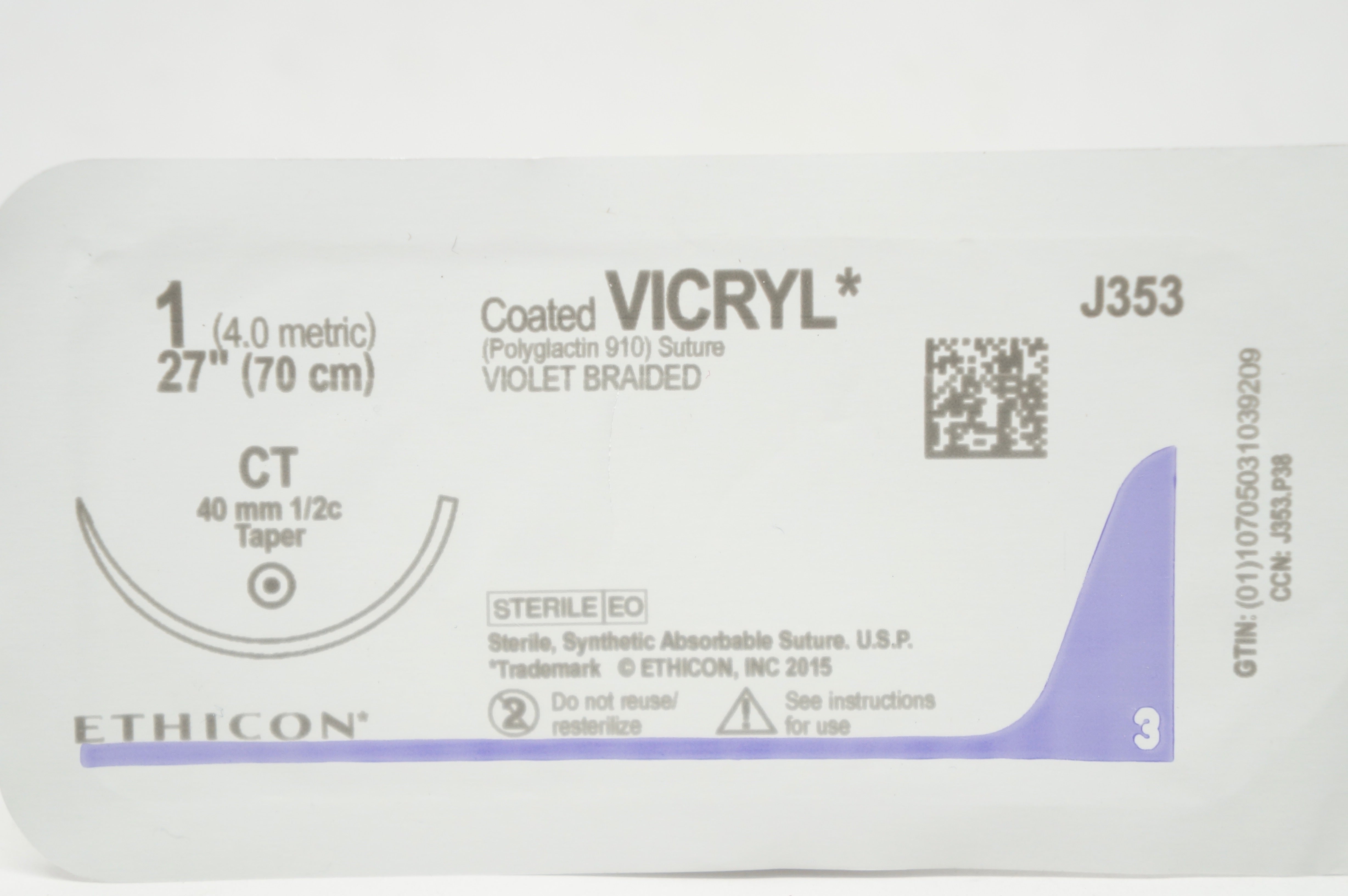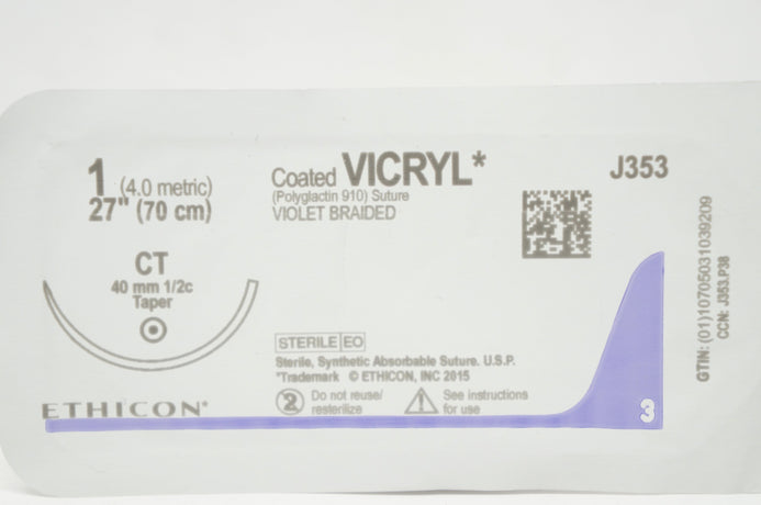 Ethicon J353 1 Coated VICRYL Polyglactin 910 Stre CT 40 mm 1/2c Taper, 27 inch