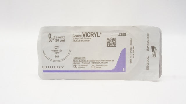 Ethicon J358 0 Coated VICRYL Polyglactin 910 Stre CT 40mm 1/2c Taper, 36inch