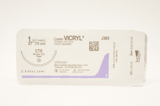 - Ethicon J365 1 Coated Vicryl Stre CTX Violet Braided CTX 48mm1/2c Taper 27in (x)