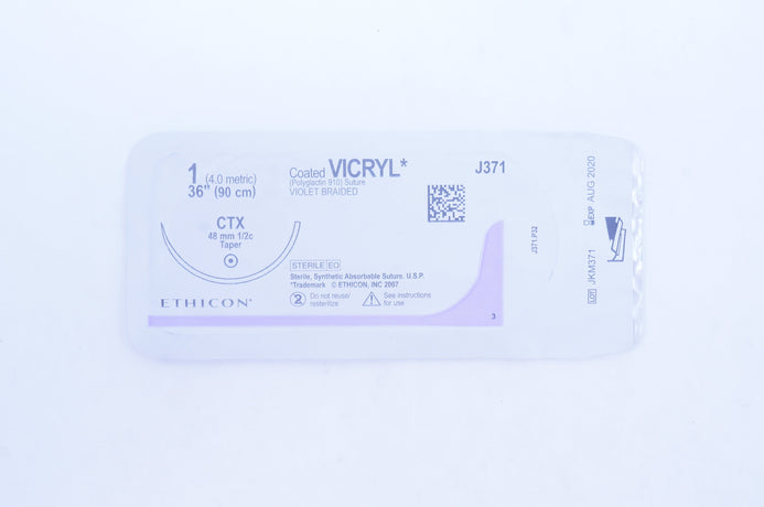 - Ethicon J371 1 Coated VICRYL CTX 48mm 1/2c Taper, 36inch (x)