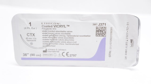 Ethicon J371 1 Coated VICRYL Polyglactin 910 Suture Violet Braided CTX 48 mm 1/2c Taperpoint 36 inch