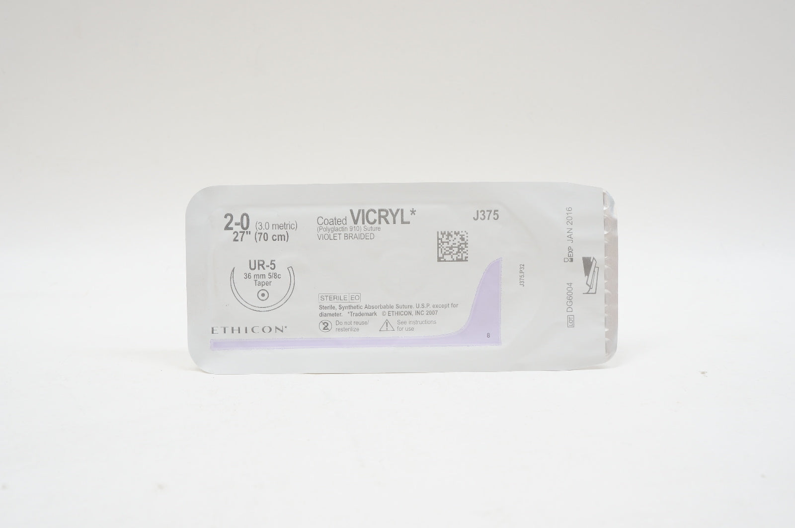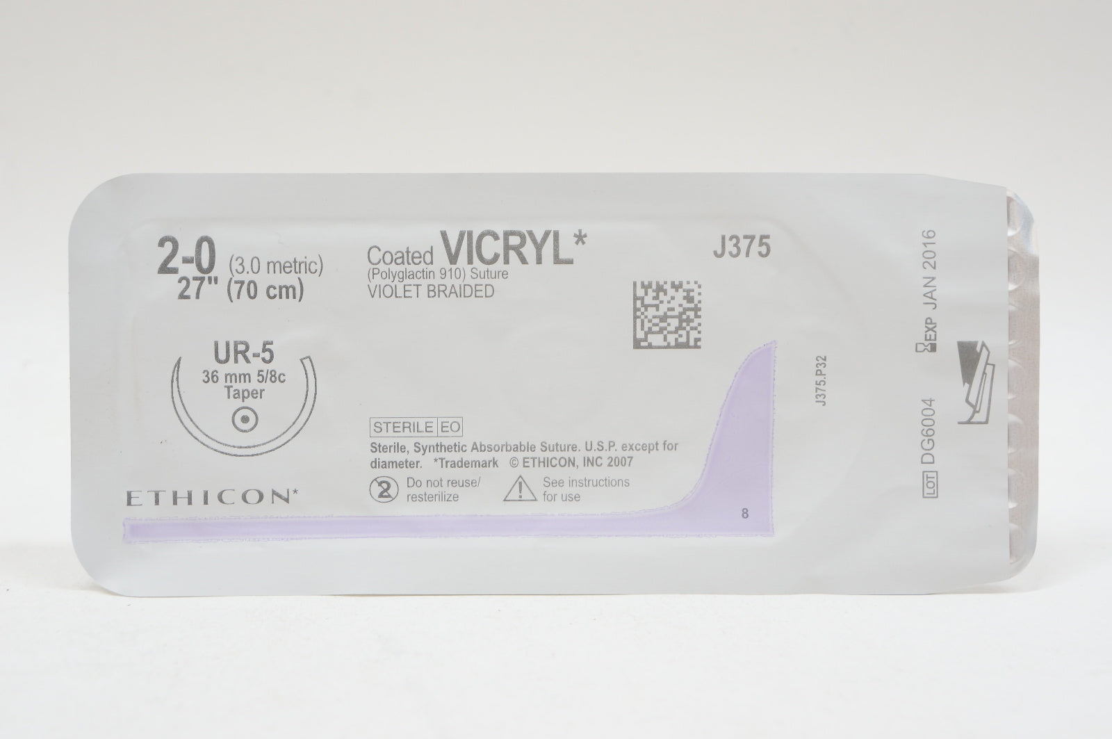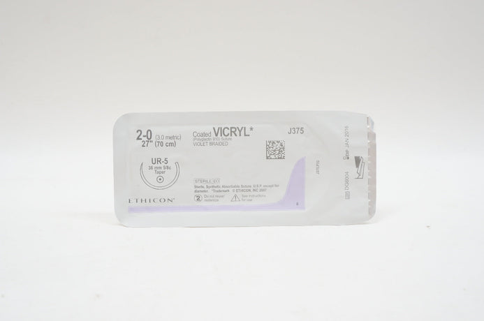 - Ethicon J375 2-0 VICRYL, UR-5, 36mm 5/8c Taper, 27inch (x) ~ Lot of 34