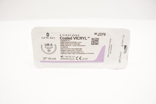 Ethicon J376 0 Coated VICRYL Polyglactin 910 Suture Violet Braided UR-5 36mm 5/8c Taper, 27inch