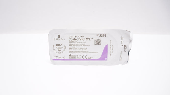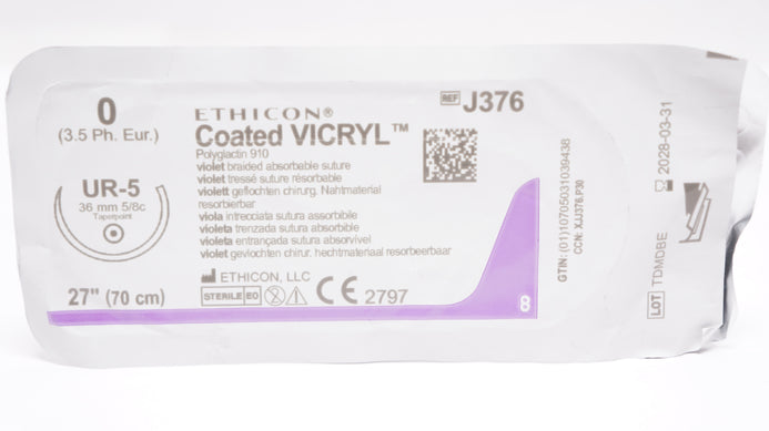 - Ethicon J376 0 Coated VICRYL Polyglactin Stre UR-5 36mm 5/8c Taperpoint, 27inch